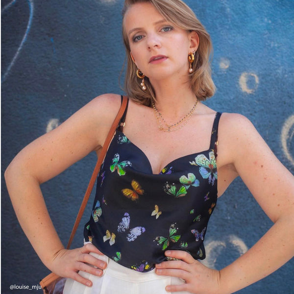 Tissu Satin Stretch, Soie - Papillons, Chrysalis