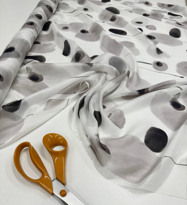 Tissu lancé-découpé, Soie - Géométrique Argent Noir Métallisé, Spacer