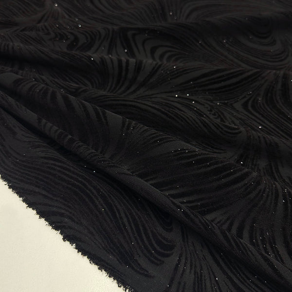 Tissu Velours Brodé, Paillettes - Noir, Miralux