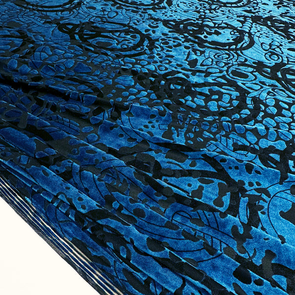 Tissu Velours Thermocollé, Soie - Tie and Dye Bleu, Desia