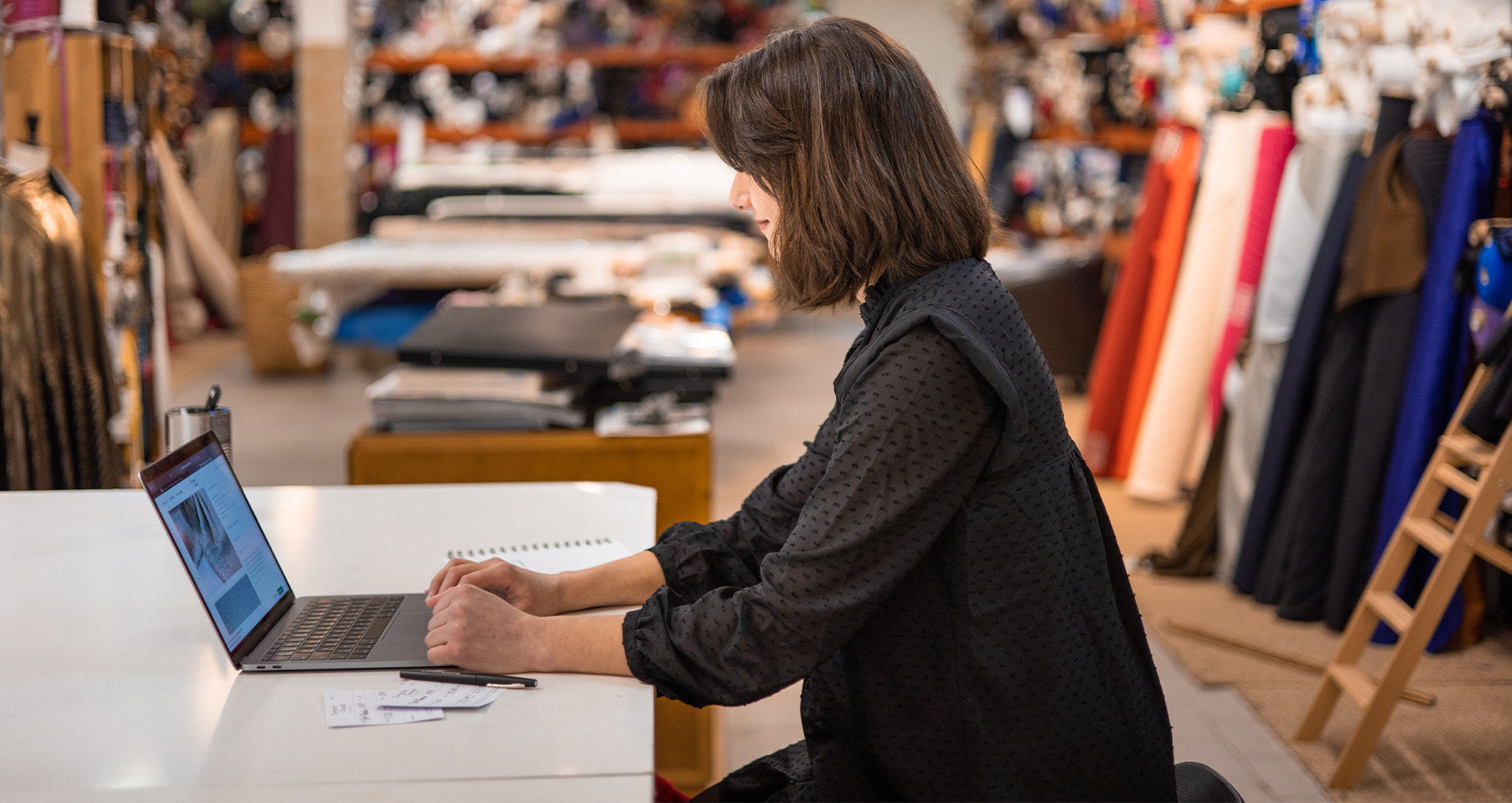 Pour une immersion totale, nous vous accueillons au sein de notre entrepôt : le lieu idéal pour toucher nos matières et bénéficier de conseils personnalisés.